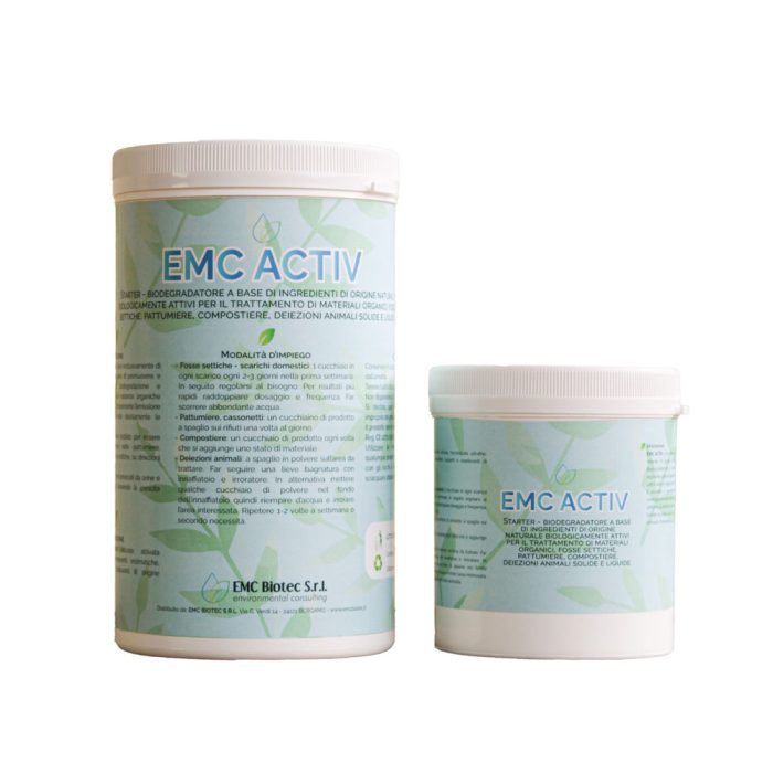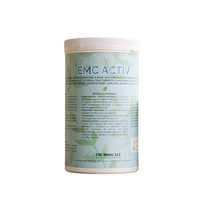 EMC ACTIV is a starter, based exclusively on natural active ingredients, that can promote and foster biodegradation and stabilization processes at the expense of solid and liquid organic substances, effectively reducing the emission of bad odors and definitely improving hygienic conditions.